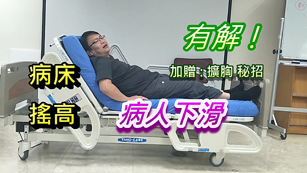 這次,他發現病人下滑,就教家屬坐在第2片,先調高床腳